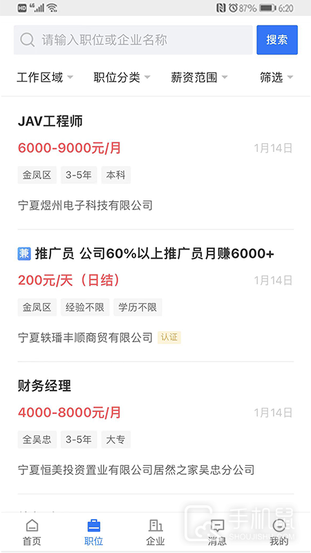 5、这里的职位非常多,包含了各行各业,大家可以自己来看看