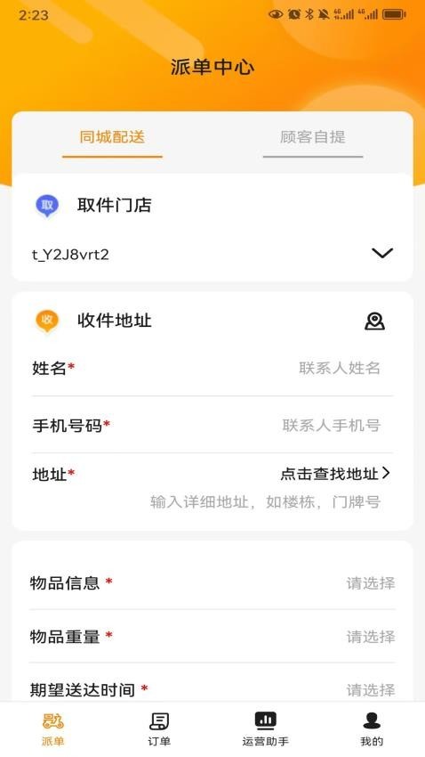 3、可以选择派单功能将各种外卖订单进行同城配送派单操作;