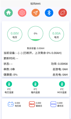 轻风BMS是一款管理手机电池电量的软件,通过这款软件,用户可以实时查看当前电量、电池温度,进而对电池进行监控,了解电池目前的健康情况,根据实际要求调整设置,延长电池寿命,界面简洁大方,操作简单不复杂,功能齐全,喜欢的用户快快来下载吧。