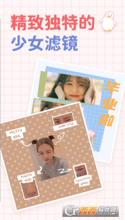 50+精美滤镜,让本就颜值爆表的你精致又可爱,还有拍头像,秀美食,和风景旅行等多种风格滤镜,为你的照片锦上添花;
