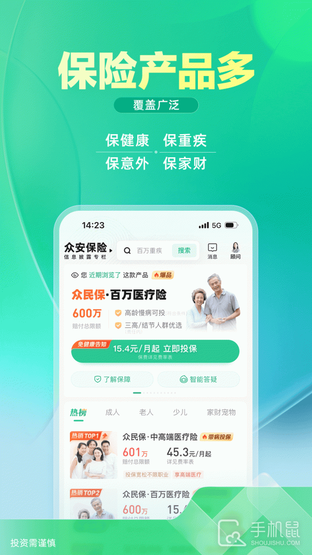众安保险是一款专业的保险服务app,提供全面的保险产品及相关服务,用户可以方便地查看不同种类的保险产品,并进行在线投保、理赔等操作,还提供保险资讯、风险评估等功能,帮助用户更好地了解保险知识,保障个人及家庭的财产及健康安全。
