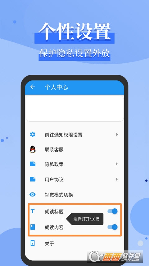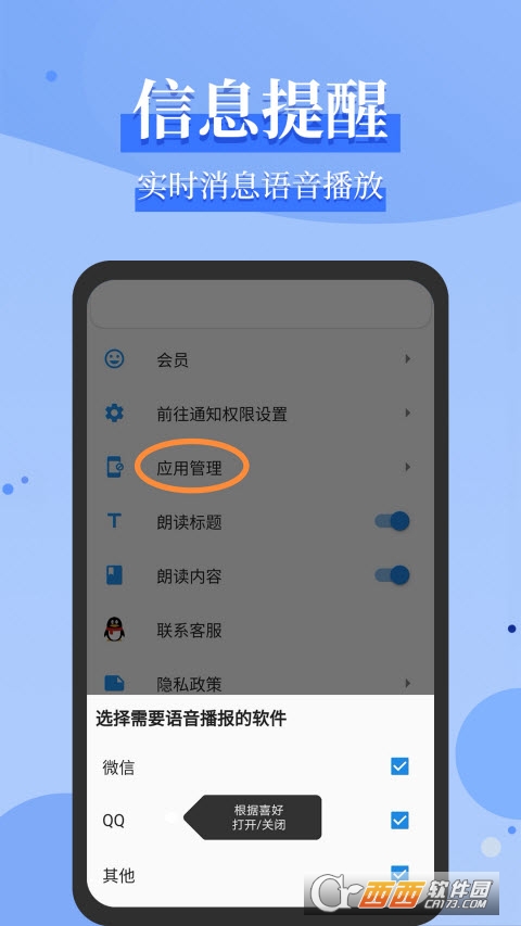 适用于手机各类app。微信、QQ消息阅读。息屏也能朗读。屏蔽消息内容。
