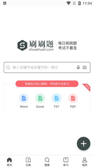 刷刷题是一款专为大学生和职业资格考试备考设计的智能刷题工具,支持多种搜索方式,包括拍照、语音、文字、浮窗以及截屏搜索,使得用户可以快速找到所需的题目进行练习。提供题库制作功能,用户可以一键将Word、Excel和PDF文件转化为电子题库,实现手机端的碎片化练习,并自动记录错题本,方便复习和巩固知识点!还具备丰富的练习模式,如模拟考试、记笔记、制作个人错题本等,以及支持创建班级,让朋友加入一起练习。