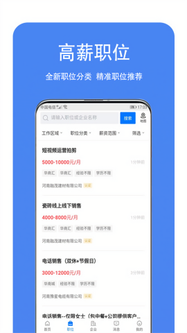 软件中所推荐的企业招聘信息都是经由人工审核的真实信息放心可靠。