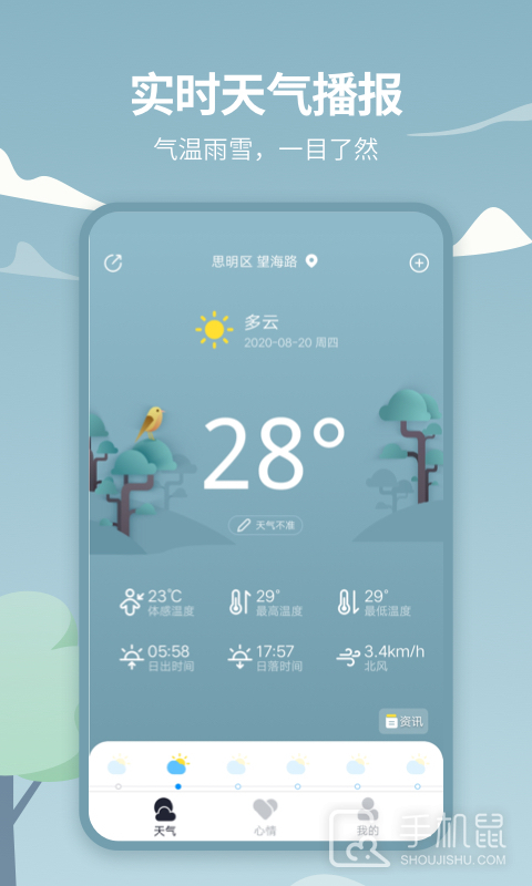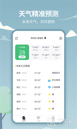 天气吧是一款提供实时天气信息的手机应用,用户可以获取当前所在地或其他地区的天气状况,包括温度、湿度、风力等,并提供未来几天的天气预报,还可以查看空气质量指数、紫外线指数等相关信息,为用户出行提供参考。