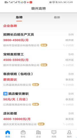 赣州直聘网app准们为赣州人民找工作准备的手机软件,大家可以直接搜索自己要找的工作类型,非常的方便好用,里面的工作都是真实靠谱的大家可以放心使用。