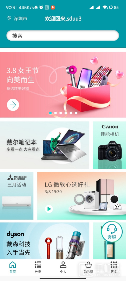 1、大家先打开app,在首页中挑选自己的心仪的商品,或者是大家也可以根据分类挑选自己需要的电器。