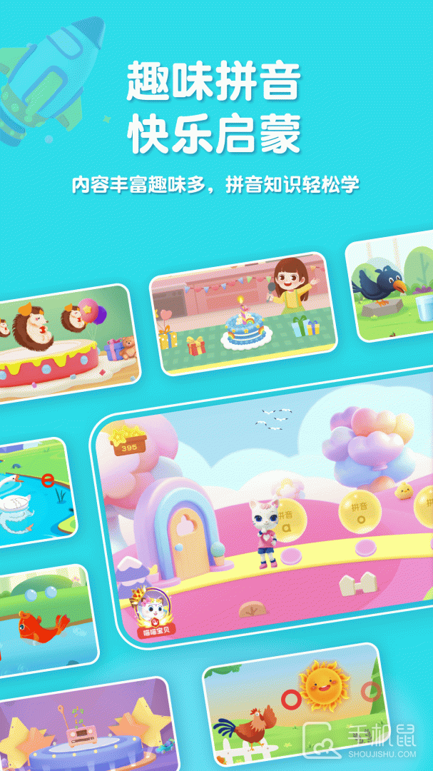 5、拼音游戏:多种拼音游戏,包括打地鼠学拼音、连一连学拼音、翻翻乐学拼音等拼音游戏。