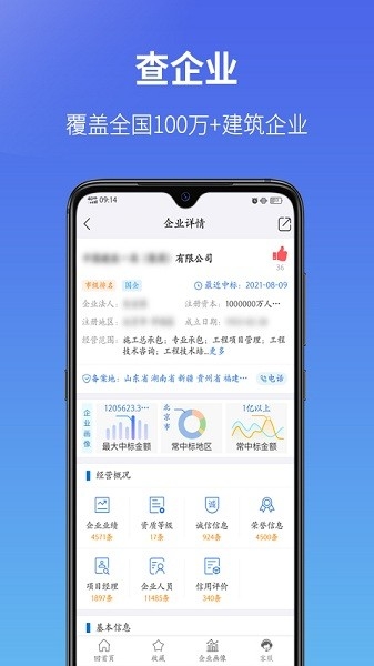 查企业:一键查询建筑企业多维数据,包括中标业绩、建造师在建、经营信息、荣誉、资质、备案、人员、工商信息、经营风险、司法风险等;