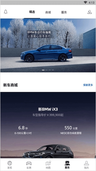 一个全新电商平台,通过“新车商城”,用户可在线了解BMW在售车型。在BMW经销商小伙伴的给力支持下,还能在线预约试驾以及轻松下定金预定车型。支付完成后即生成新车订单,用户可随时查看订单进度。让你足不出户,就能将心仪的BMW座驾收入囊中。