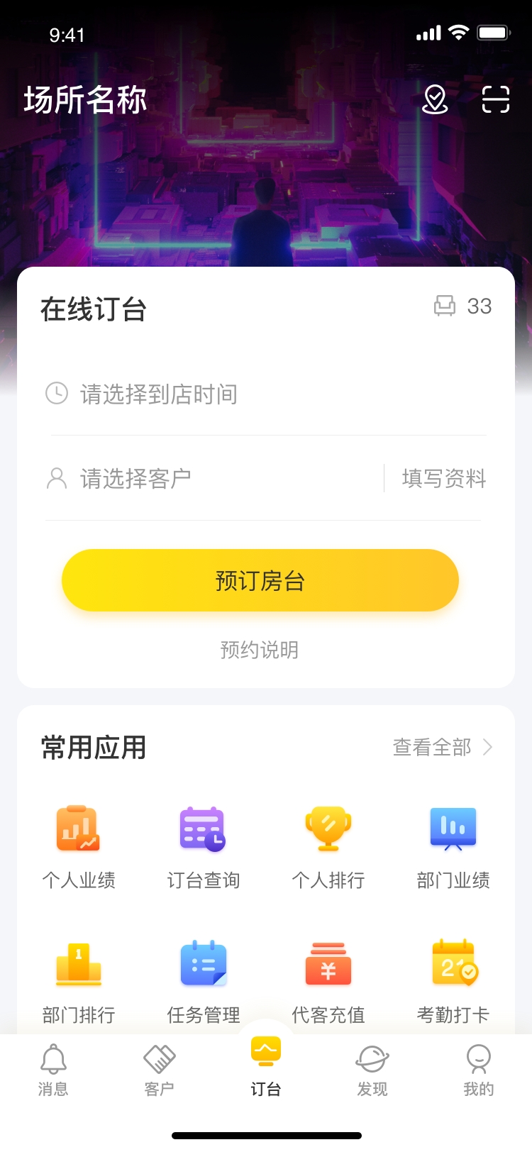 预定房台,能够支持普通消费者在线对娱乐场所进行在线的预定功能,方便到了就能及时的进行娱乐。