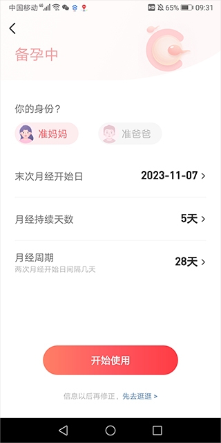 用户在通过宝宝树孕育app测算时间时可以在登录之前就选择【备孕中】这项开始记录
