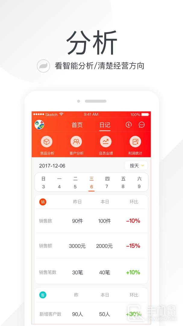 4.日记功能记录当日销售额、利润等数据,更有贴心的隐藏数据功能