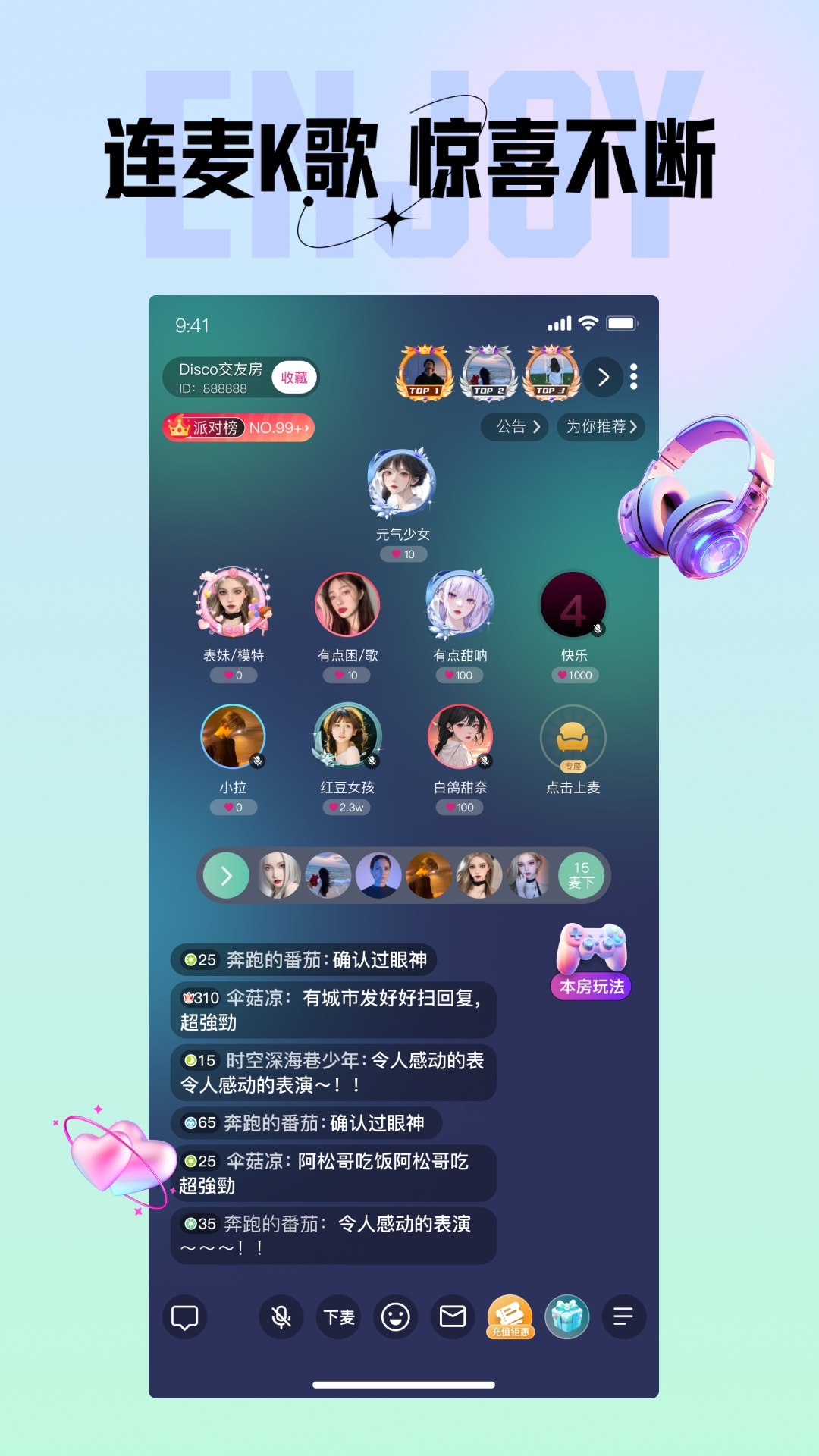 多人聊天室线上互动连麦交友,声控福利,轻轻松松发现你喜欢的声音。