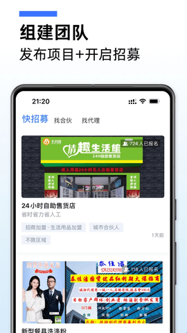 2、「发布创业项目」晒出你的创业项目、增加你的曝光机会、提升你的影响力。