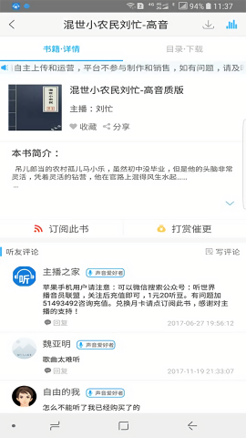 4、正在播放:显示您正在播放的作品,可以在评论标签发表您的收听感受;