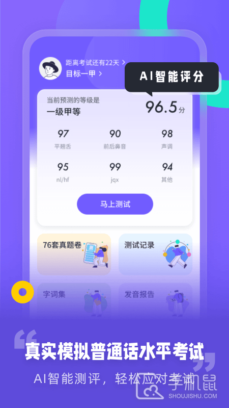 专言普通话测试是一款针对普通话学习的app,它提供丰富的练习题,涵盖听力、口语、阅读和写作等方面,帮助用户提高普通话水平,还有录音功能用于自我评估和改进发音准确度,这款app适用于任何想要提升普通话能力的用户。