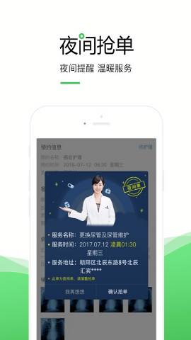 3、提供护士到家服务:打针、输液、换药(含PICC)、吸痰、采血、导尿、鼻饲、居家护理、造口护理、孕妇护理、产后母婴护理、催乳师护理、术后护理、护士到家、家庭病床等服务。