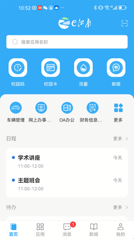 e江南手机版是一款专门为江南大学师生们准备的系统服务平台,它里面能够查看校园内各种信息,包含了每天课程安排,会议通知,校园新闻等等,同时还有校园日常生活服务功能,可以如缴纳费用,共享设备使用,校园卡充值等都十分的方便,赶紧下载试试吧。