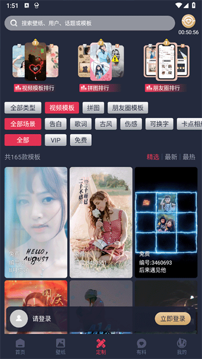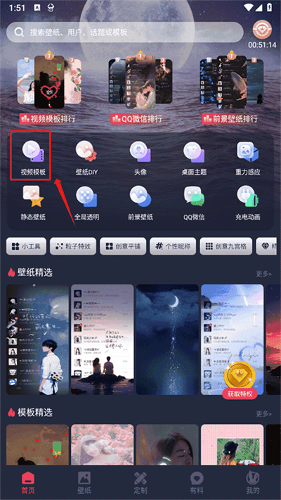 2.一键定制功能:用户可以通过内置的DIY工具,选择静态或动态壁纸模板,添加个性化元素,一键定制专属于自己的独特壁纸。