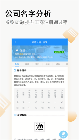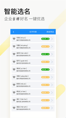 2、便捷的起名和核名服务让你知道名字的情况,便于进行管理,让名字管理更专业;