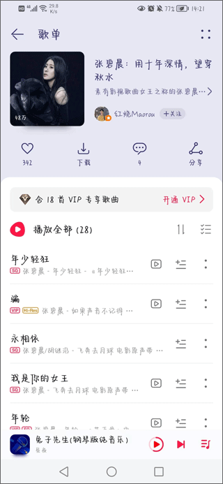 3、留心功能:你可以一键留心你所喜爱的歌手。