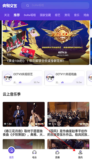 在央视文艺App右下角单击我的