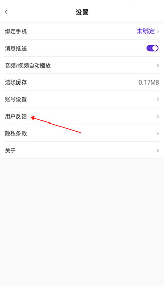 在设置页面单击用户反馈