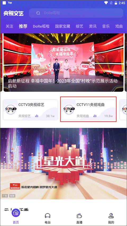2、聚合综艺频道、戏曲频道、音乐频道、音乐之声、经典音乐广播、文艺之声、阅读之声、HitFM劲曲调频的海量独家资源。央视文艺不仅拥有大量的电视节目资源,还整合了各类音频资讯,包括综艺频道、戏曲频道、音乐频道等等,用户可以随时随地收听自己喜欢的歌曲和节目。
