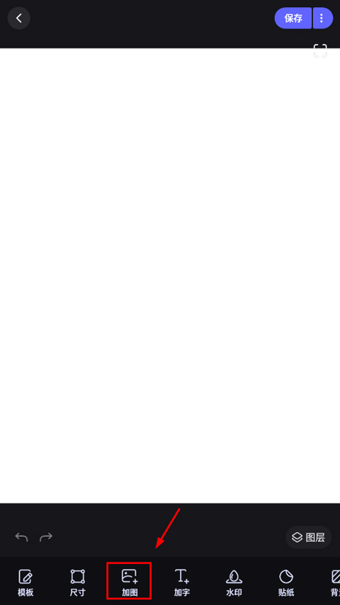 4.得到空白的画布,点击下方加图,在相册选择添加的图片;
