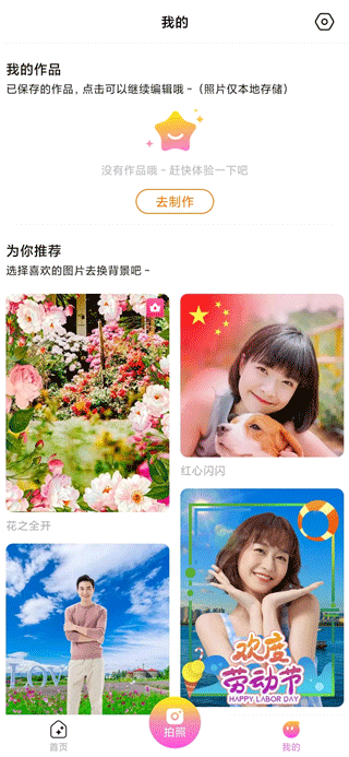 2、我们看到这里有着非常多来自于其他用户分享的作品,我们可以进入查看,你也可以选择各种素材进行拍照