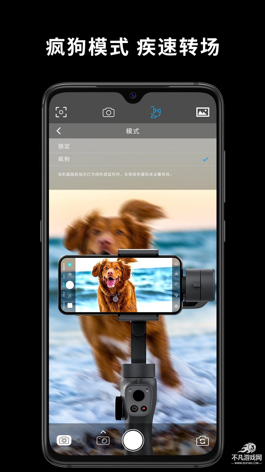 操控简单,过蓝牙与云台进行通信,控制拍照和录像;应用功能丰富,包括延时拍照、美颜、滤镜等功能;多种智能模式,包括人脸跟拍,物体追踪等模式,让你拍照更加自由。