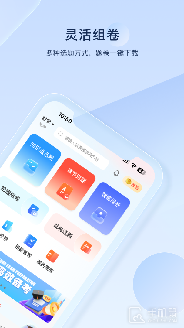 组卷是一款专为教育工作者开发的安卓手机app,可以帮助用户快速、方便地制作试卷,通过该app,用户可以根据自己的需求选择题库中的题目,设定题型、难度、数量等参数,并生成符合要求的试卷,这款app提供了丰富的题库资源,涵盖多个学科和不同年级的教材内容,确保试卷的有效性和针对性。