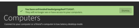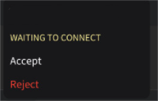 3、之后每次两个人都上线时,主界面电脑选项中,好友会出现在自己的电脑旁边,点击“Connet”发送请求。成功后主机会弹出提示框,白色“Accept”接受,红色“Reject”拒绝。