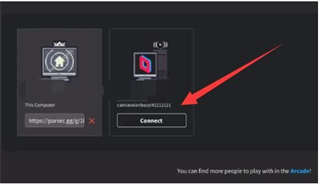 4、加入后,右边会出现一台电脑,加入方点击“connect”就成功开始联机了。