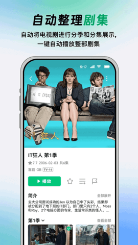 2、看到喜欢的影视可以查看简介详情,还能一键收藏播放;