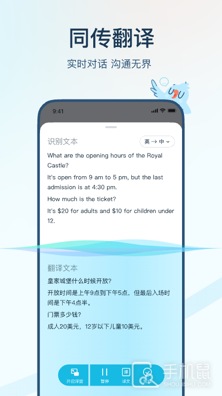 拍照翻译:强大的OCR摄像头取词和拍照翻译功能,一拍即译,无需手动输入便可快速翻译英语、日语等多种语言,满足出国翻译、旅行翻译、旅游购物翻译、英语学习翻译等需求。