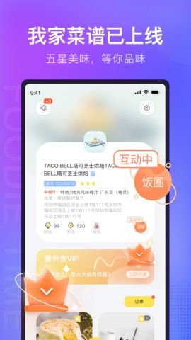 番外食软件中有超多的美食品牌服务商,选择所在地点和想吃的餐厅类型,就可以获得超多的附近美食推荐,包括网红地标、必吃美食和先吃后付等,细心烹饪,不辜负每一位顾客,碰到有趣的人还可以共同交流美食,饭圈还可以互动并在线点单。