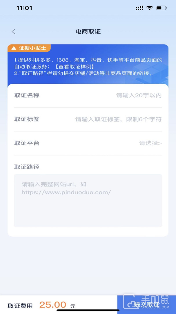 2、增加取证提醒和注意事项