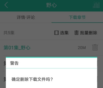 6、同样,在弹出的确认提示框中点击“确定”即可将不需要的集数成功从手机中删除。