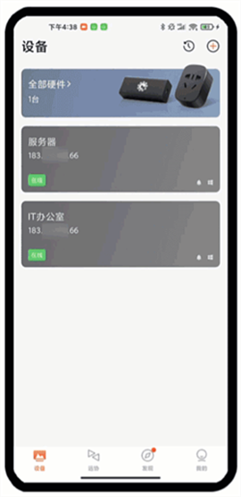 2.进入首页设备页面,点击右上角+号图标,选择添加电脑设备
