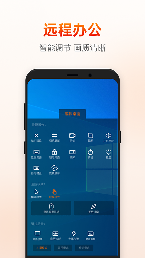 1、远程桌面:通过手机远程控制电脑,实现远程桌面连接,支持屏幕录制等控制功能,可以为客户、同事、朋友和家人提供远程协助。