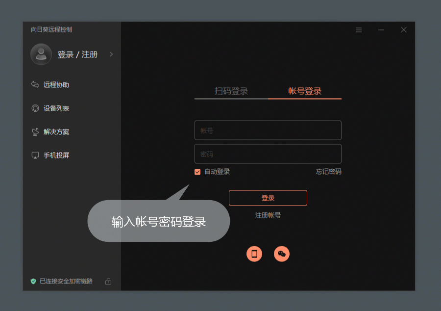1.下载并安装向日葵远程控制,打开软件后注册并登录账号