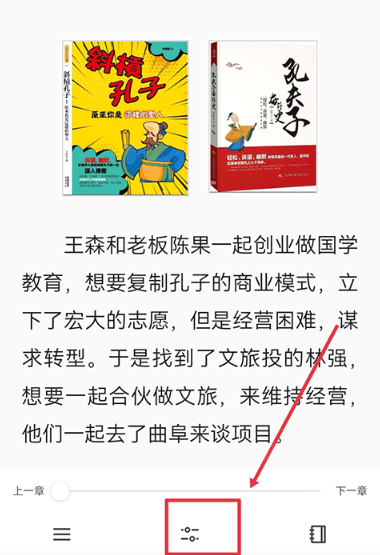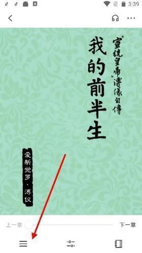 3、进入书籍阅读界面后,点击屏幕的任意位置,在弹出窗口中点击左下方的按钮进入目录