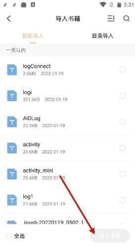 3、在导入书籍界面,点击导入的文件后选择右下方的导入书架,即可导入本地书籍