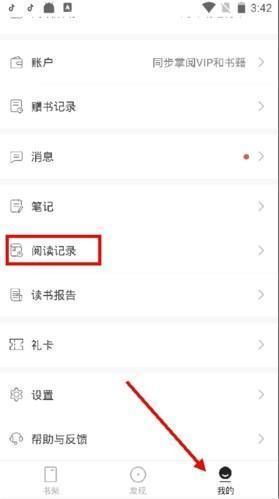 1、打开掌阅精选,点击右下角“我的”选项,在下拉界面点击“阅读记录”按钮