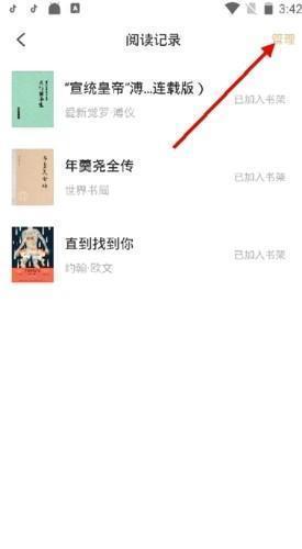 2、进入阅读记录界面后,点击右上角的“管理”选项