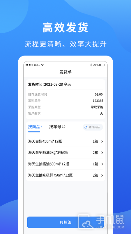 6、查看采购单,订单明细,打印采购标签