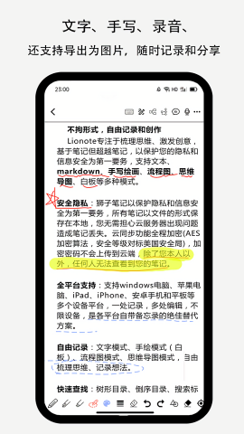 lionote笔记能够帮助用户记录日常生活和学习笔记的软件工具,该软件能够快速帮助用户记录下重要的对话和知识点,并且还可以进行照片、录音、文件等重要信息保存,非常方便快捷,还可以进行各种编辑标记,让用户知道重要知识点,赶快来点击下载吧。