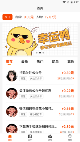 1、所有的用户都可以在平台上享受到便捷的线上兼职服务,这里有各种各样的线上任务等待着用户们来领取,每个任务都可以获得丰厚的积分奖励;
